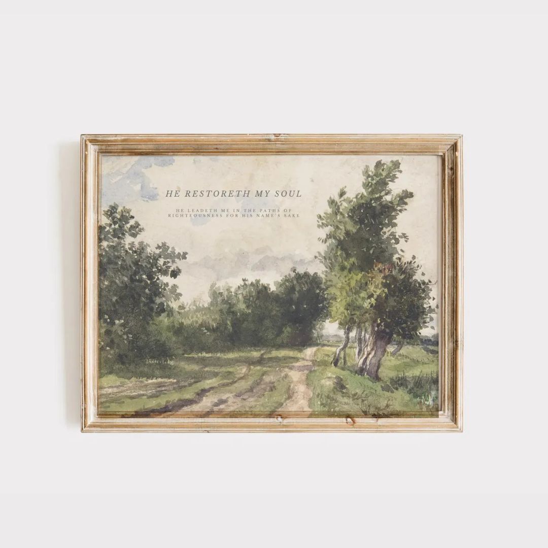 Bring peace, beauty, and faith into your home with this set of 9 printable wall art pieces inspired by Psalm 23 — one of the most beloved scriptures of all time.
