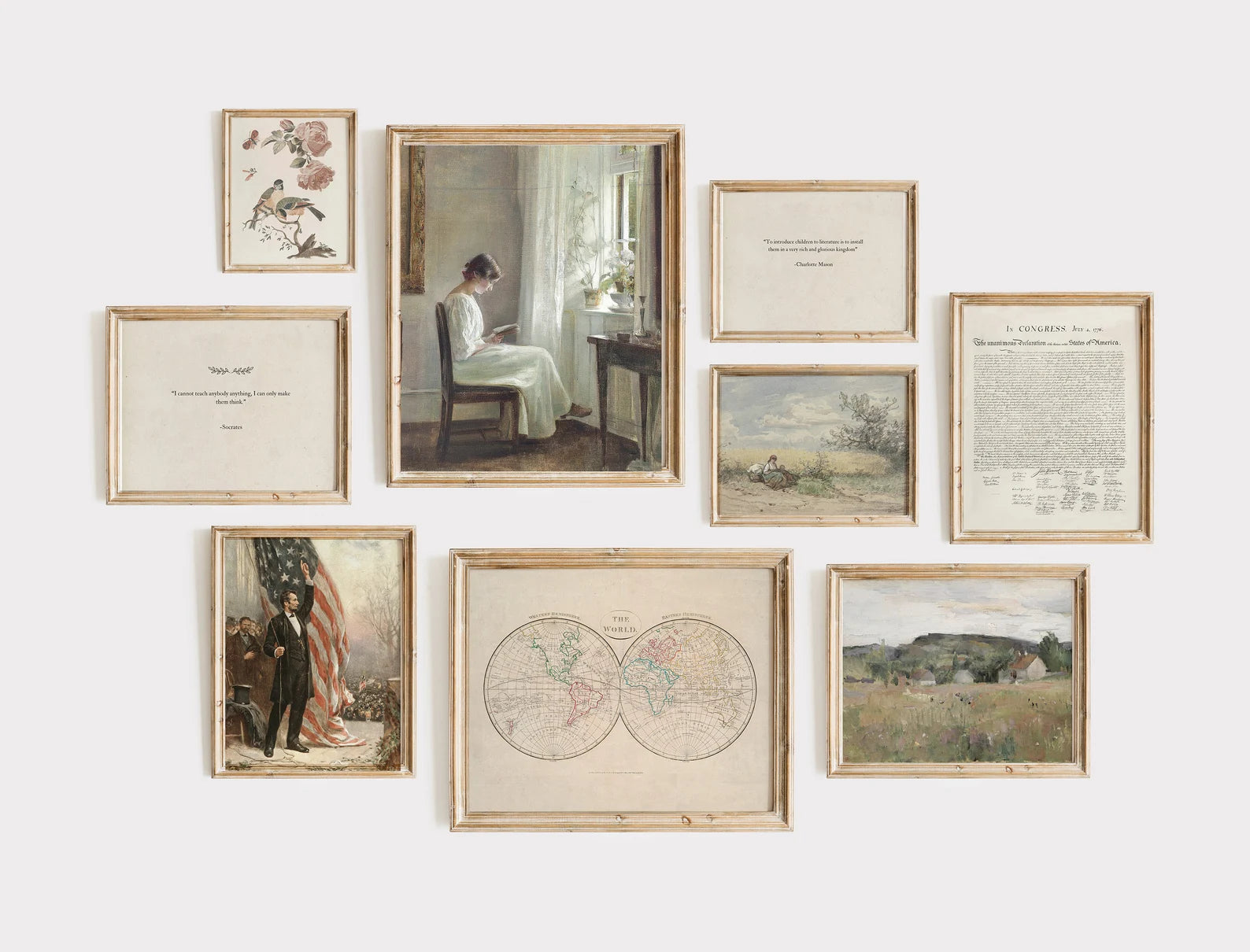 Transform your homeschool space with this captivating Homeschool Gallery collection featuring an exquisite blend of Antique American Wall Art. This instant download set combines historical charm and educational aesthetics, perfect for fostering a love for learning at home.